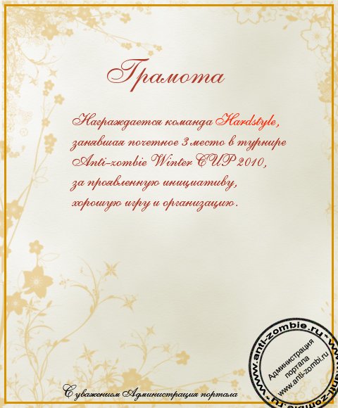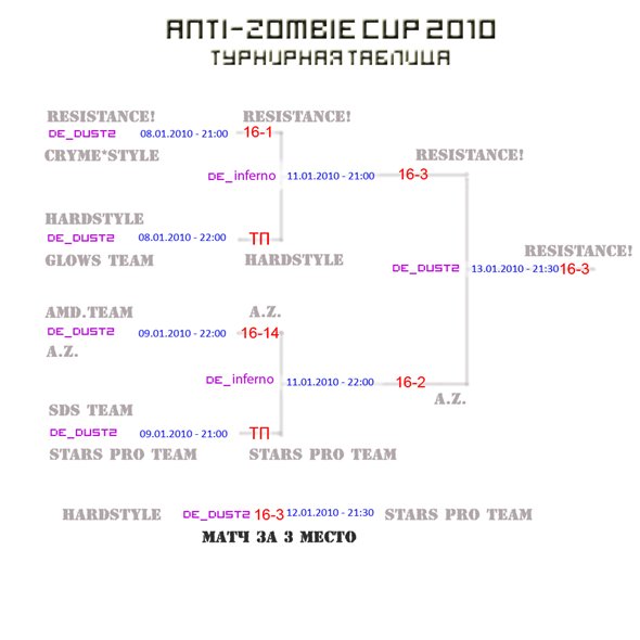 Завершился ТУРНИР ПО COUNTER STRIKE 1.6 ANT-ZOMBIE WINTER CUP 2010,где наша команда Hardstyle заняла почетное 3 место!
